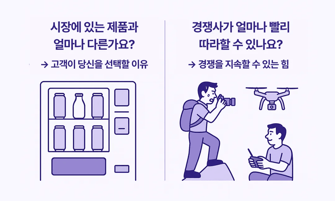 1️⃣ 첫째, 시장에 있는 제품과 얼마나 다른가요?